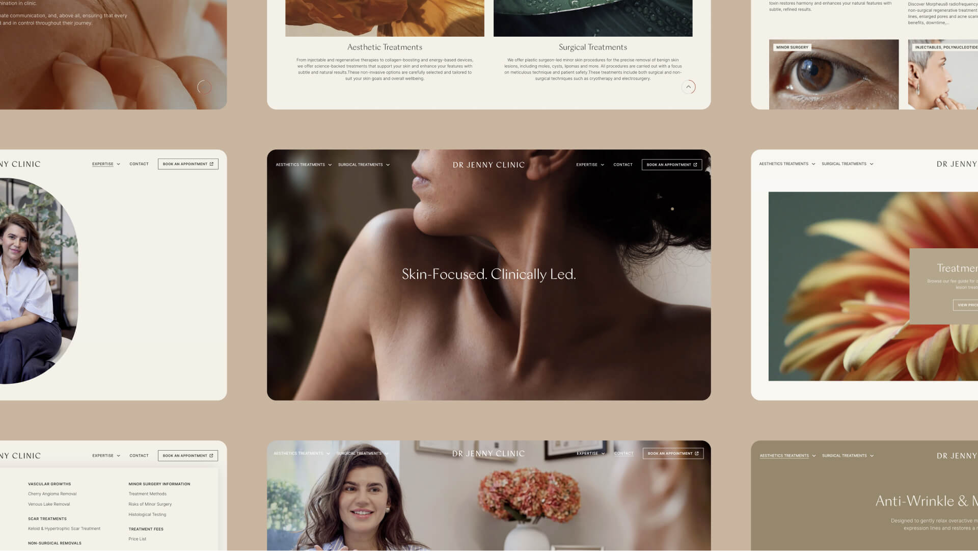 The website provides a flexible foundation that will grow with the clinic as new aesthetic and surgical treatments are introduced. Easy to update and optimised for performance, it ensures Dr Jenny can keep her patients informed, highlight her expertise, and showcase the welcoming experience she offers.