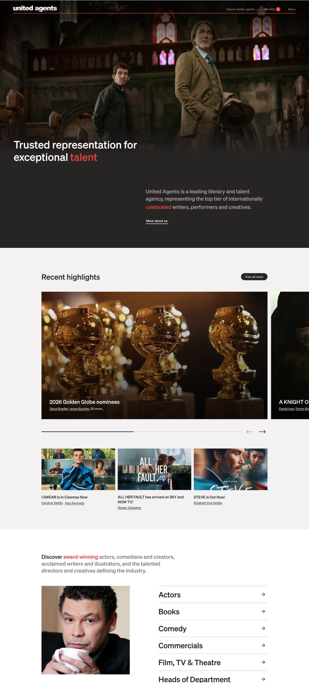 We redesigned and redeveloped the website in Wordpress, with careful attention paid to the migration of around 3,500 clients and 500 agents. We worked with the existing brand to craft a professional, sophisticated design with clear UX to effectively showcase their exceptional talent.