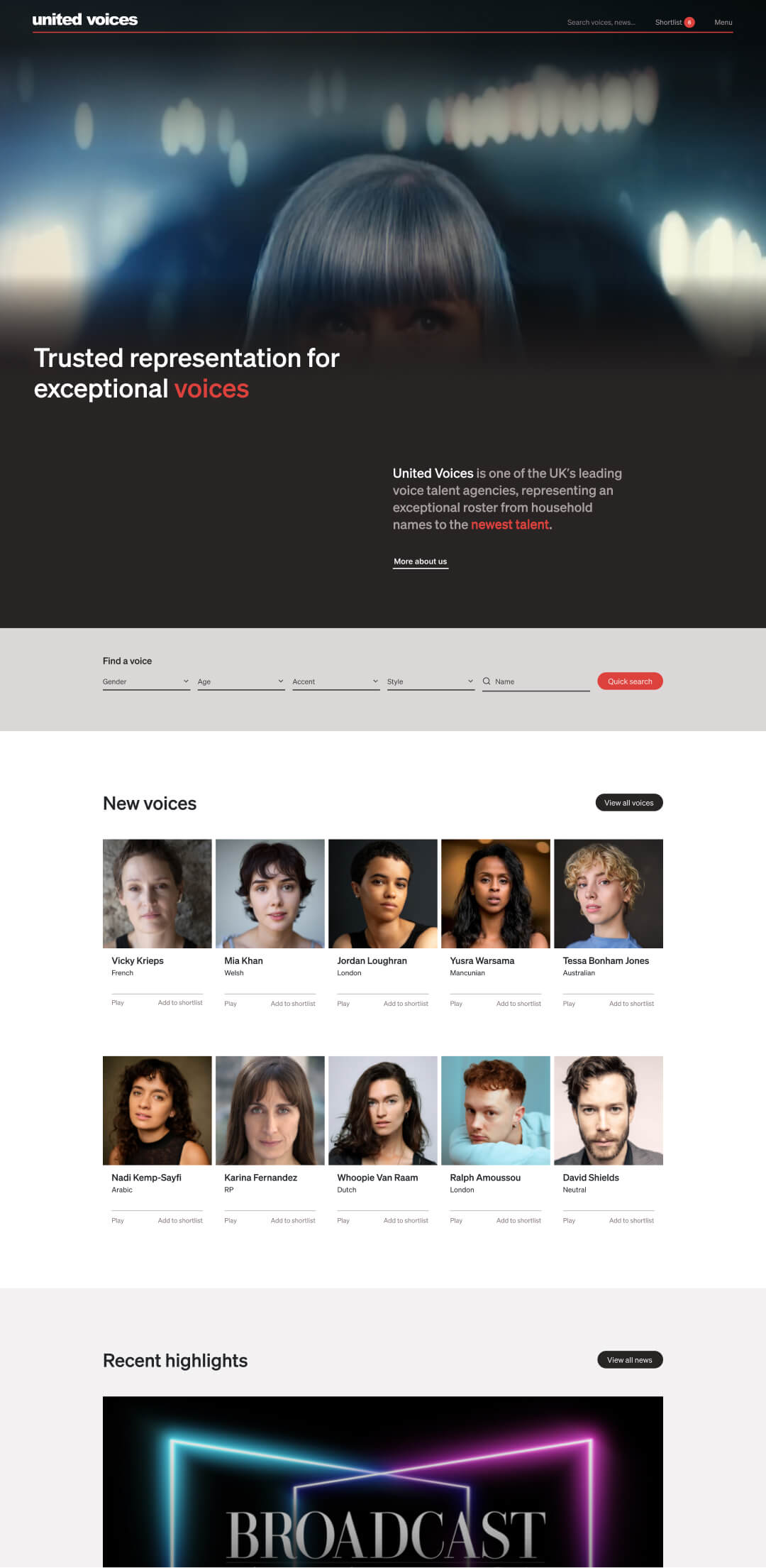 Through a recommendation, the United Agents team approached us to help with a new site for them and sister agency United Voices. They had previously attempted to move from 15-year-old Drupal sites to lacklustre rebuilds that were too AI-dependant and wasn’t capable of handling the complexity of migrating such a large site, before going back to Drupal again.